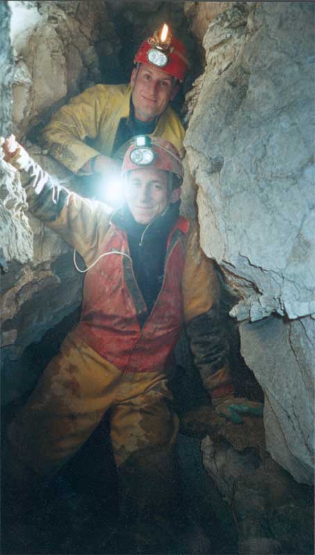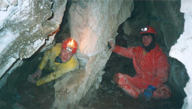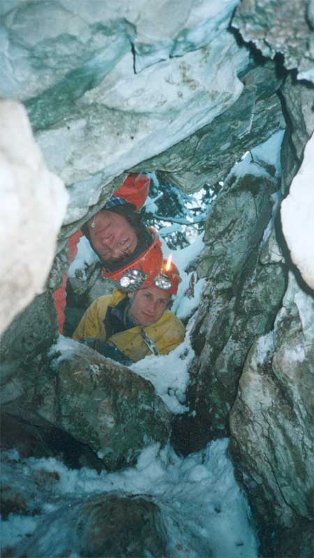 En octobre 2000, la Grotte de l’Encensoir (VU2) est découverte par hasard, après avoir été « détourné » du chemin classique de la Dent de Lys par des bouquetins têtus (!). Une dépression est repérée dans la forêt. Elle ressemble à une entrée en grande partie obstruée. Comme à notre habitude, un bâton d’encens est allumé pour détecter les moindre courants d’air. Surprise, la fumée est aspirée par un petit orifice et fonce vers l’inconnu. En deux temps trois mouvements, l’entrée est ouverte et les vingt premiers mètres découverts. Quelques temps plus tard, une équipe de spéléo explore le premier méandre, un méandre de 50 centimètres de largeur pour 2 mètres de hauteur et qui continue par une étroite galerie phréatique. Quelques photos prisent lors de cette explo :