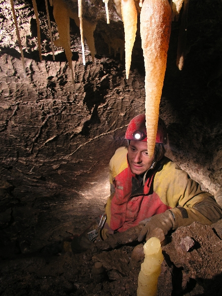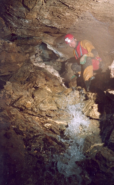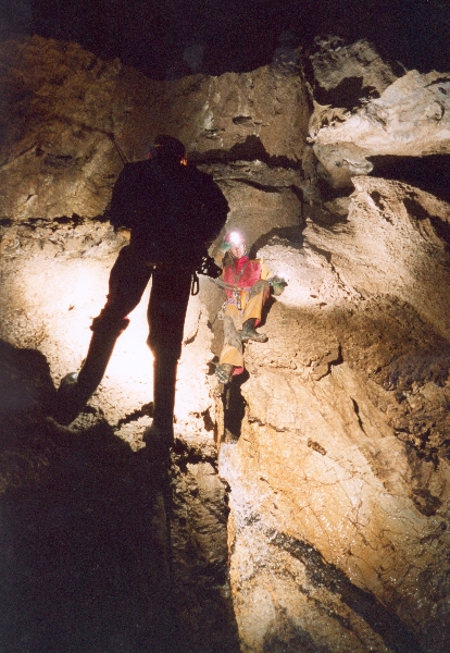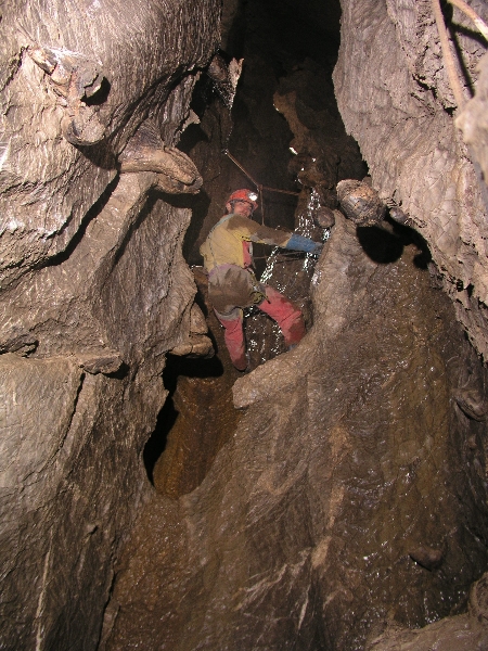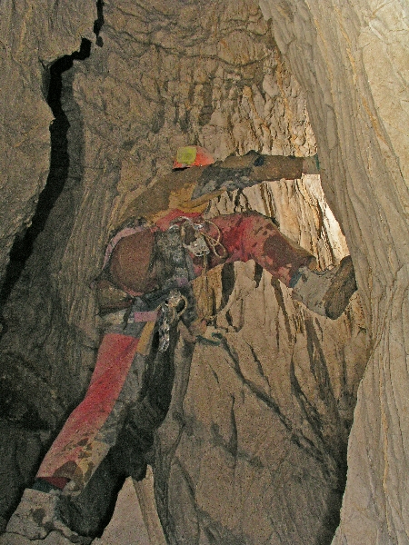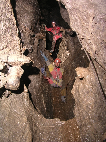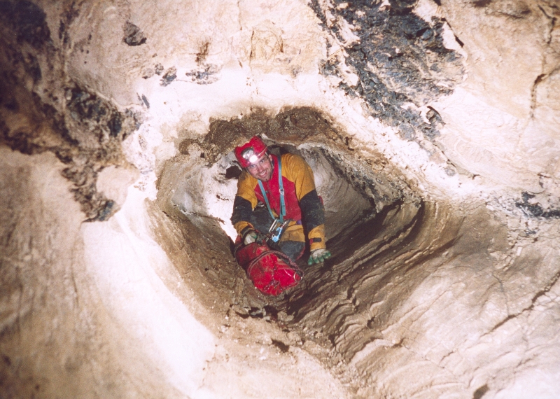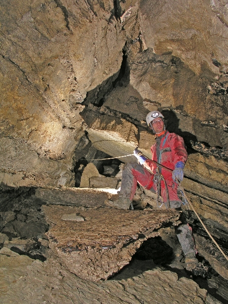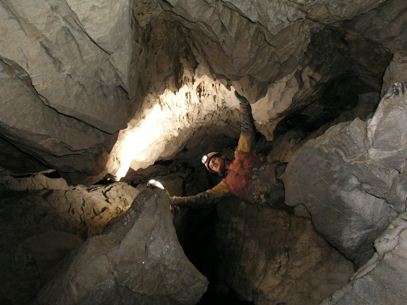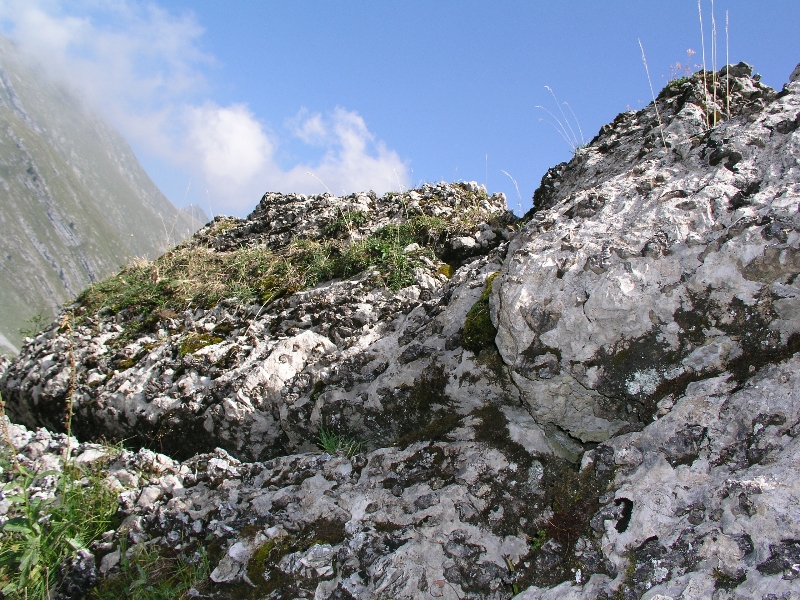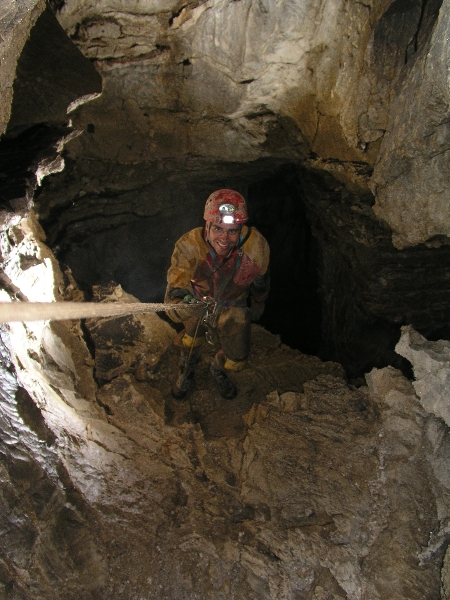 La zone du Creux. Il s’agit en fait d’un bassin fermé percé de nombreuses et imposantes dolines. Jusqu’à notre dernier camps, aucuns gouffres importants ne se situaient dans cette partie, même si les courants d’airs sortaient de partout. Comme dit le proverbe spéléologue: s’il y a seulement un trou dans une zone, c’est souvent un trou qui paie! Le gouffre du creux, découvert en 2001, est profond de 151 mètres et permet de descendre une verticale de 122 mètres (Puits de l’Intyamon). Malheureusement la suite quasi certaine est enterrée sous des tonnes de cailloux. Il semblerait qu’une géocache pourrait s’y trouver… Géocacheurs, soyez prudents (risque de crue et très grand puits fractionné) !
