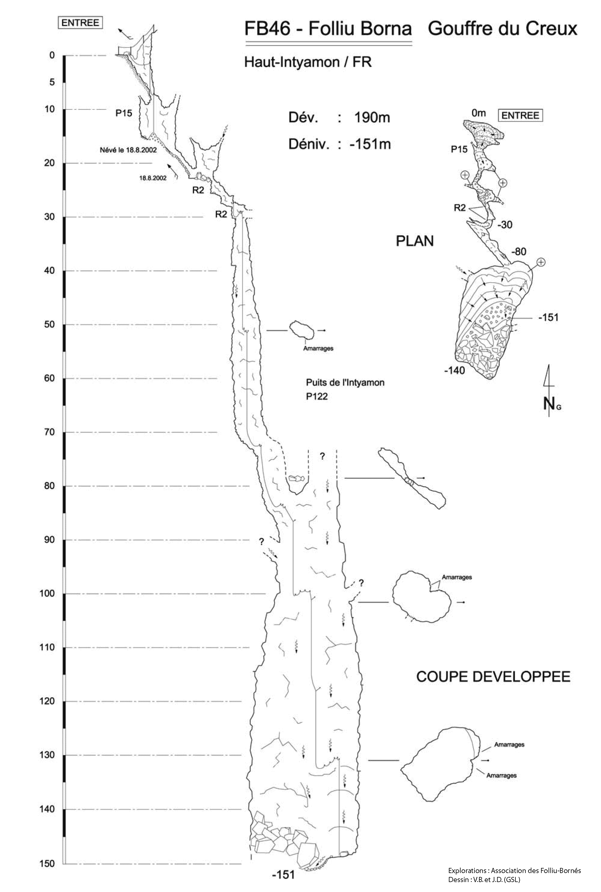 Topographie du Gouffre du Creux (Association des Folliu-Bornés) :