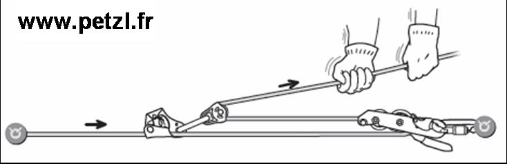 • un dispositif de mise sous tension. 1 poulie + 1 bloqueur + 1 mousqueton.