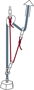 Palan inspiré de celui en N. Il permet de soulever une charge suspendue depuis une corde auxiliaire.