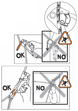 En cas de remontées obliques, il faut veiller à ce que les bloqueurs, Croll et poignée (Ascension et Basic) travaillent correctement.