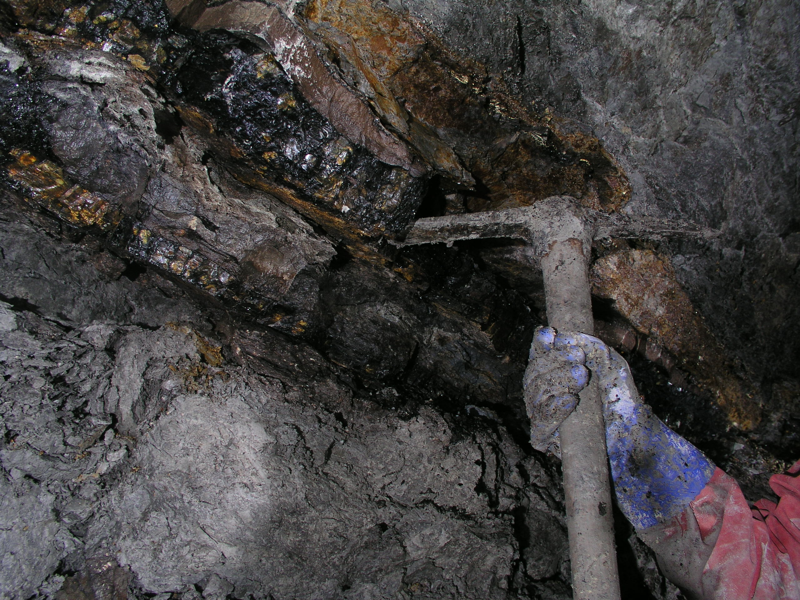 Visite du Grand Travers-Bancs Bron (1847-1898), une ancienne mine de charbon du bassin dOron. Les galeries dans la molasse friable sont impressionnantes, mais étonnement stable et peu éboulées malgré le temps qui passe.