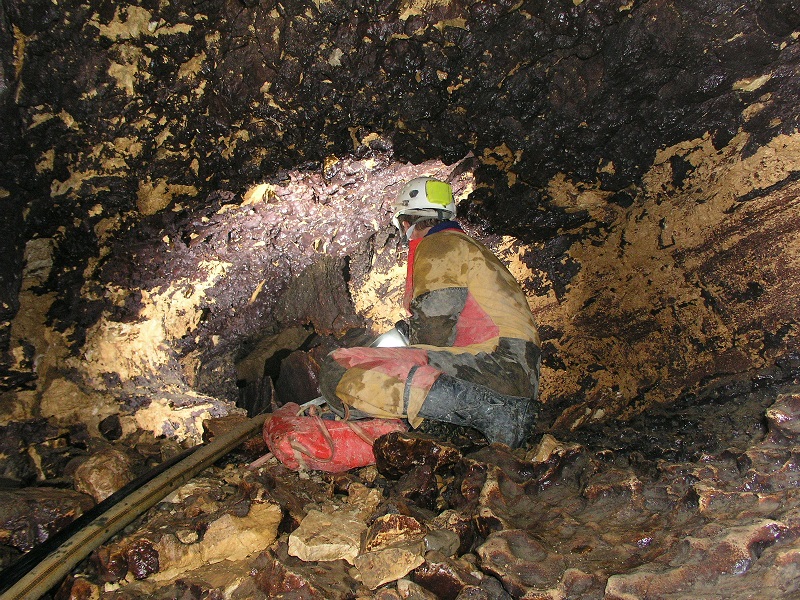 Une salle inondée en forme de soucoupe volante mesurant 3 mètres de diamètre et 1,5 mètres de hauteur est découverte. Arrêt sur un quatrième siphon de belle section ! Une reconnaissance en plongée sur vingt mètres et une prfondeur de -6 mètres montre que la cavité continue…