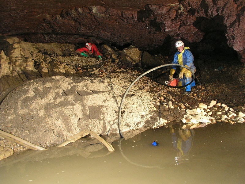 Je mets au défit tous les vrais spéléos de dépasser le terminus de notre pompage. Qui veut le relever ? Hé ! Hé ! Hé ! 😉