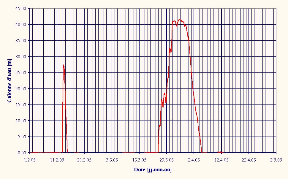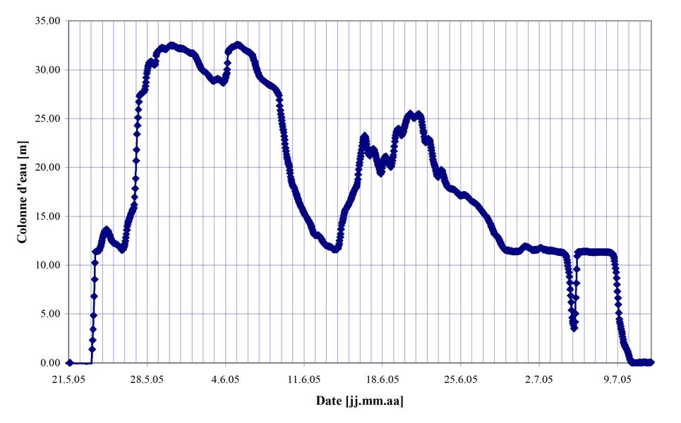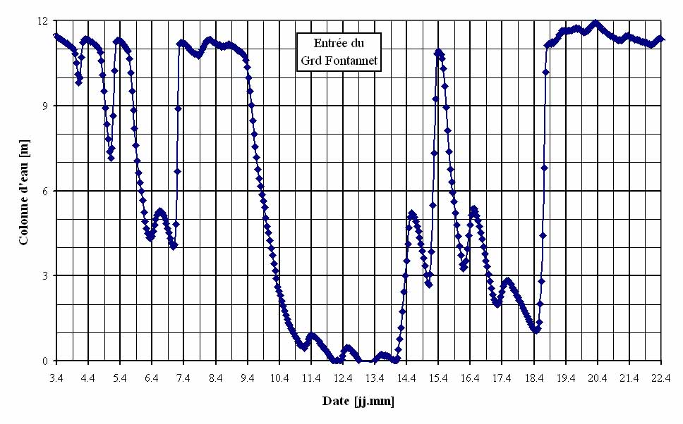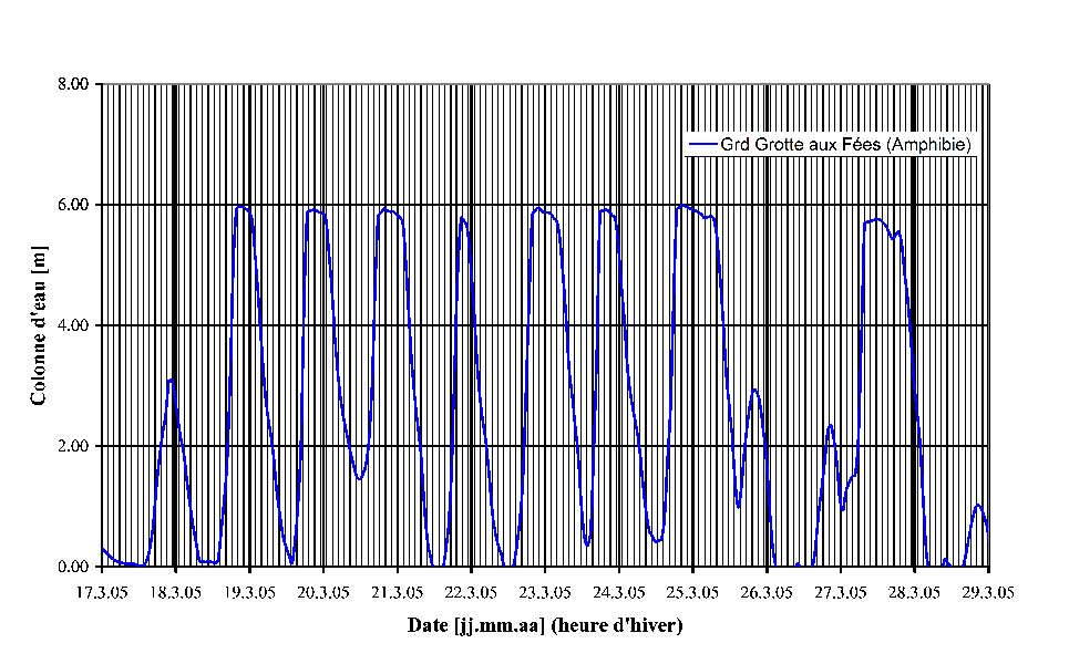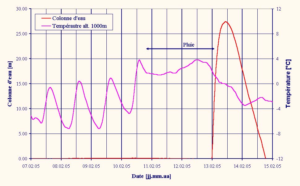 Lors de la fonte des neiges, le niveau de l’eau augmente et diminue chaque jour, avec souvent un maximum de débit durant l’après-midi et minimum durant la nuit.