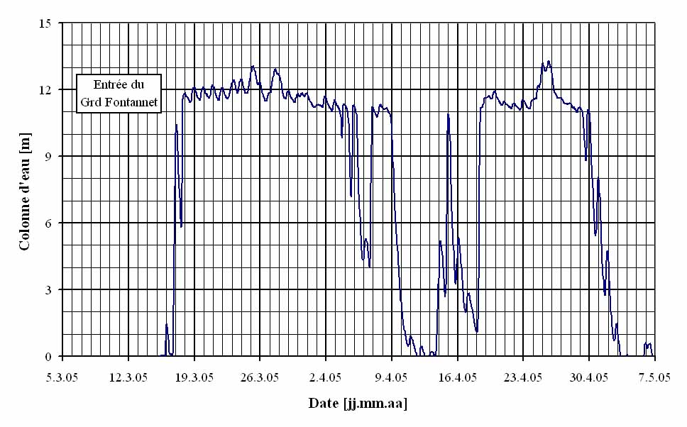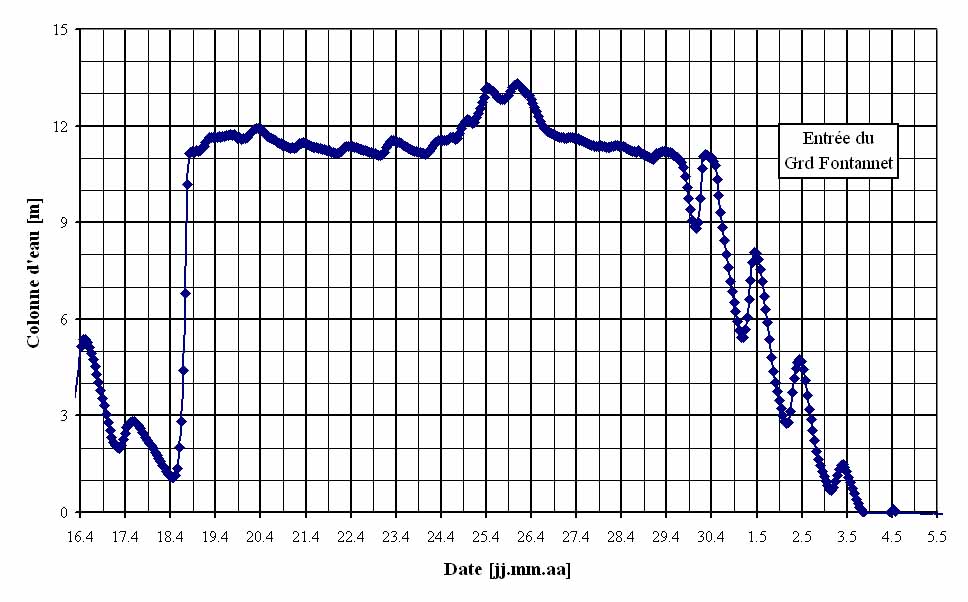 Cette cavité à été étudiée après notre pompage du Petit Fontanneet la découverte d’une salle noyée en-dessous du niveau de la source et que nous avons pu vider malgré tout.
