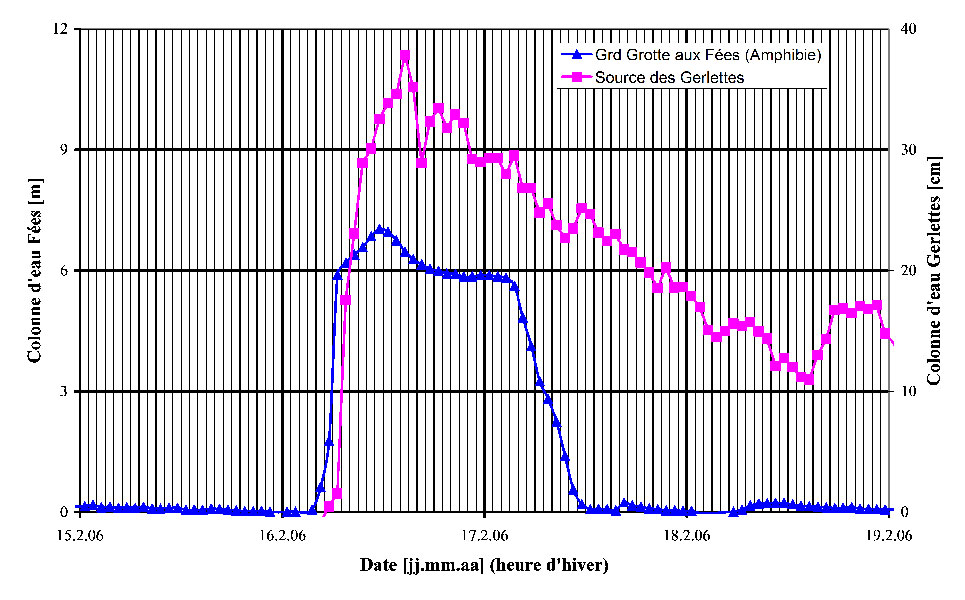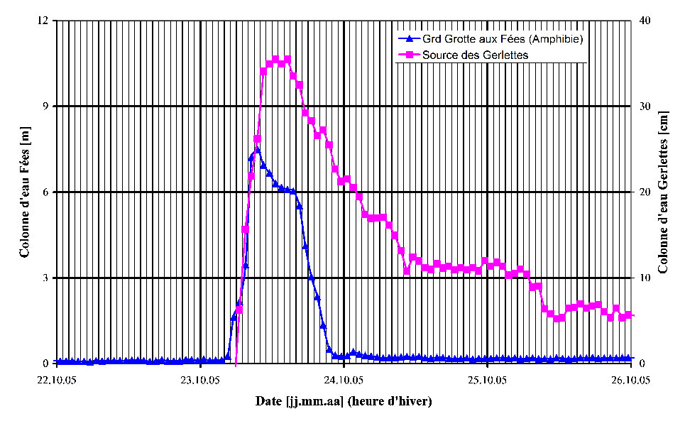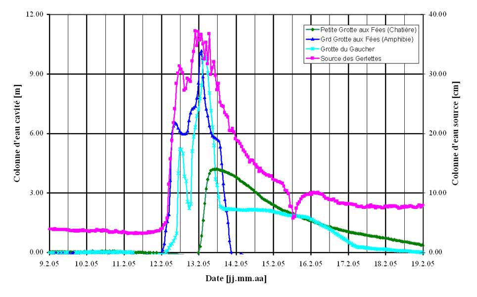 La crue est à l’origine d’événements parfois dramatiques, en particuliers dans les puits où l’énergie de l’eau froide vainquera le spéléologue intrépide. La règle pour le spéléologue piégé est d’