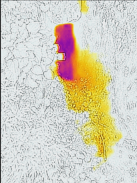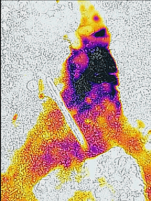 Cet air étant de température différente qu’à l’extérieure, l’idée et de la détecter avec une caméra thermique. Attention ! La caméra thermique ne permet cependant pas de « voir » l’air froid, mais seulement les objets refroidis par cet air. En effet, la densité de l’air est trop faible pour être observable directement. Plus la température extérieure est chaude, plus le contrast thermique avec l’air souterrain froid sera important. Ceci est à privilégier pour de bonnes images.