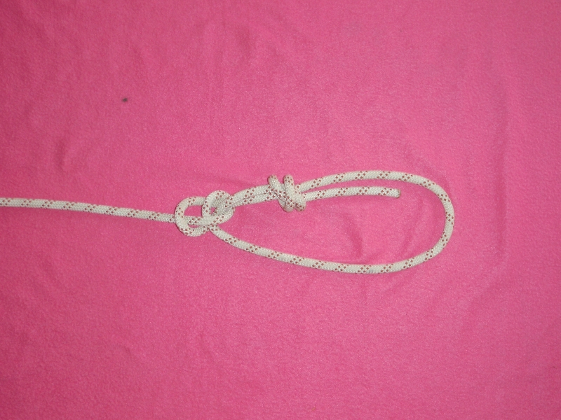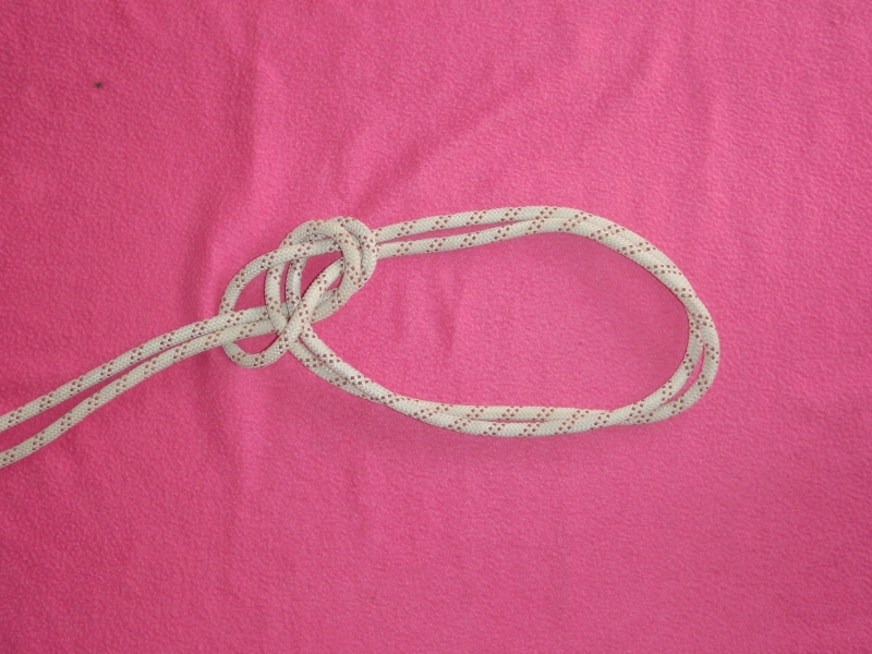 L’extrémité de la corde dormante doit ressortir du noeud d’au moins 20x le diamètre (corde de 10mm = 20cm, ou deux largeurs de poing)