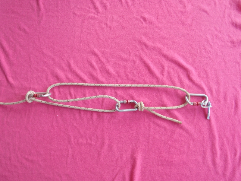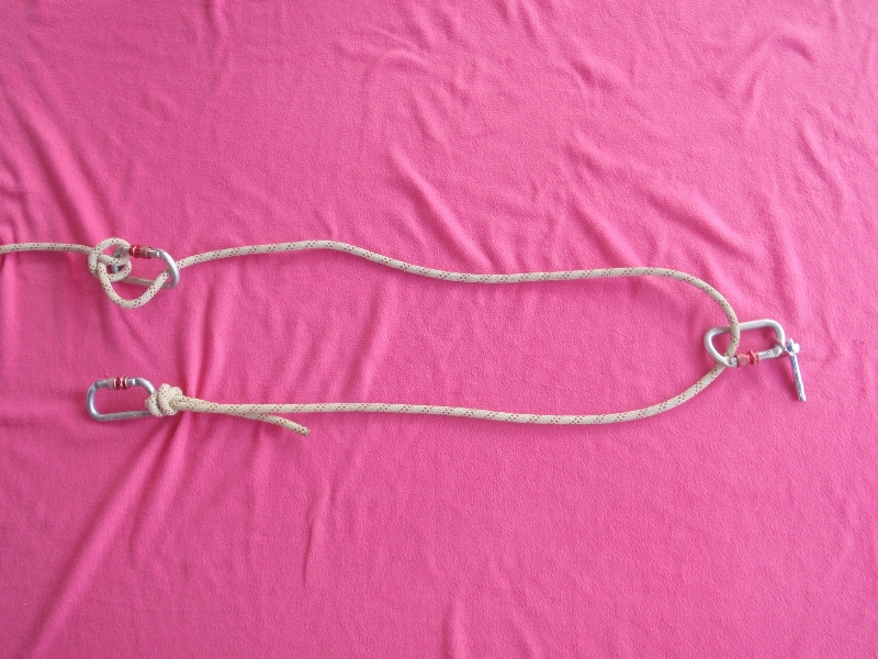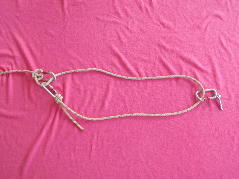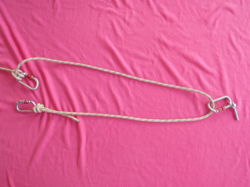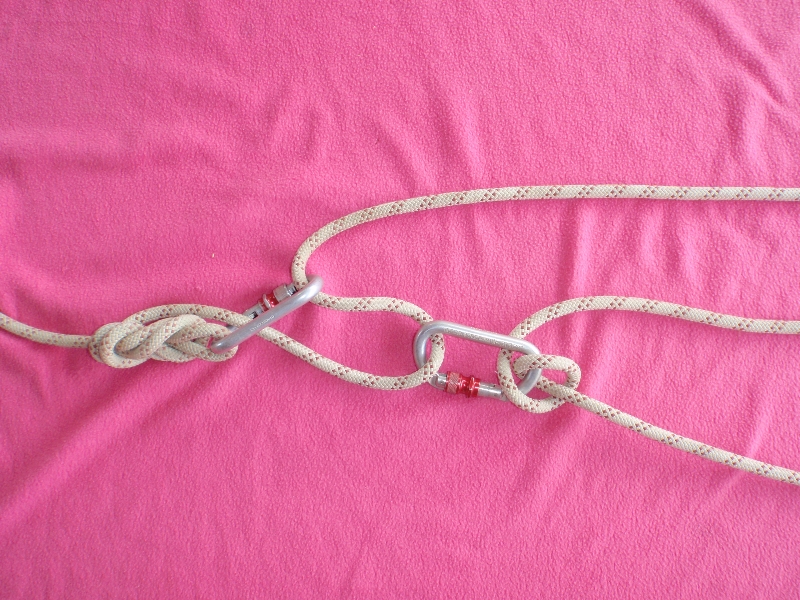 Dans les illustrations ci-dessus, les noeuds ayant le moins de longueur ont étés utilisés. Ils sont cependant difficile à dénouer. D’autres noeuds, comme le noeud de huit, peuvent aussi être utilisés.