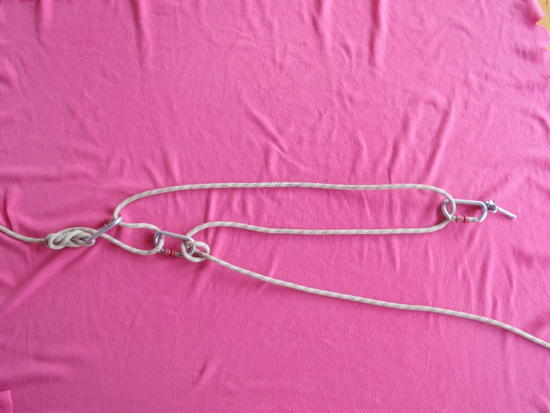 Pour tendre, il suffit de tirer sur les deux bons brins passant dans le palan. 😉